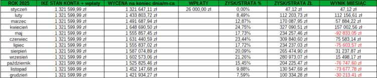 Moje wyniki możecie zweryfikować ze screenami składu portfela IKE (lata 2015-2025) oraz z arkuszem który publicznie udostępniłem nie mając nic do ukrycia! –> https://docs.google.com/spreadsheets/d/13z3U00ZJb2AsIfpqjmd3P46y_UU-_roFyuZdKfou3HM/edit?pli=1&gid=0#gid=0