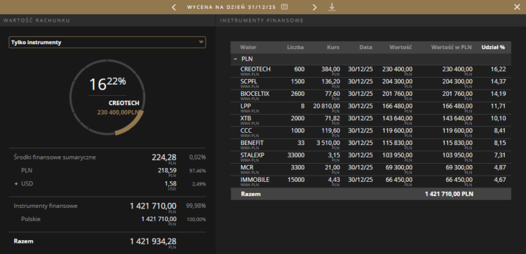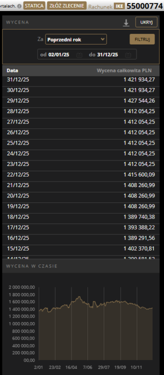 Stan IKE na dzień 31 grudnia 2025r. wynosi: 1 421 934,27zł i przynosi stopę zwrotu +8%YTD.